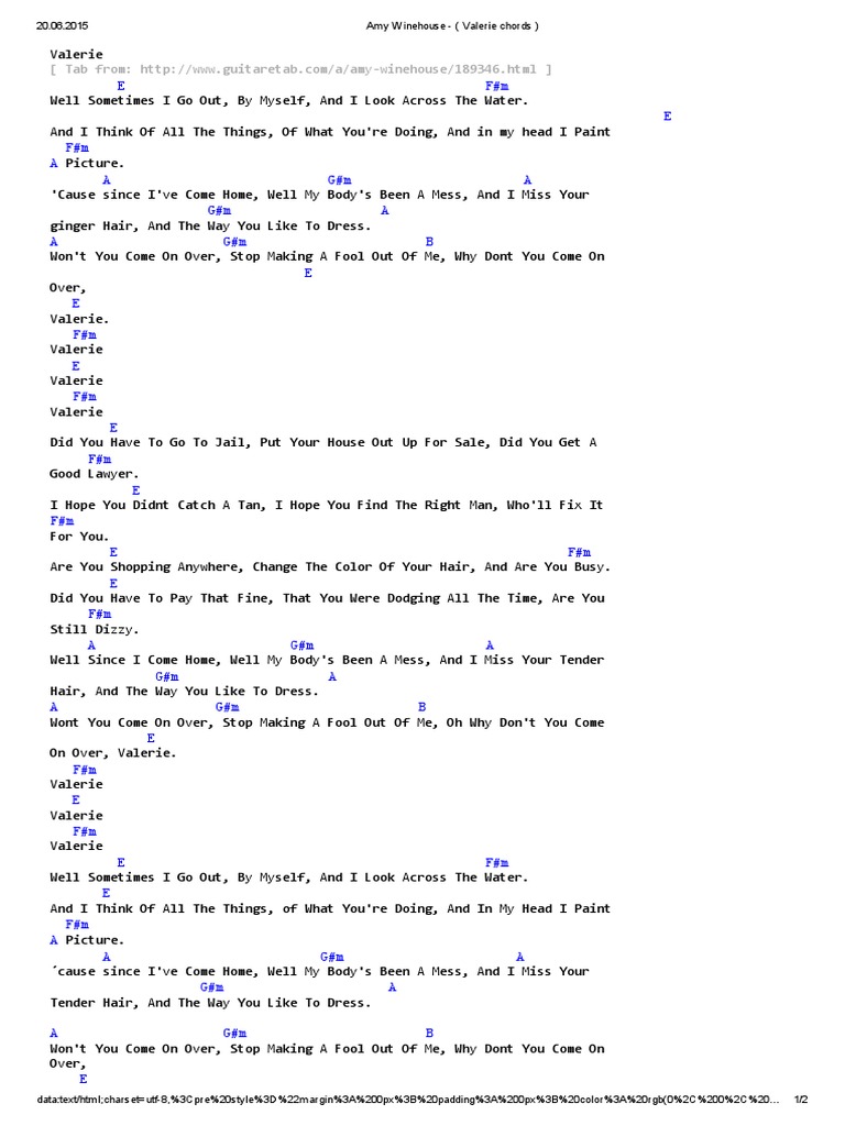 Valerie By Amy Winehouse Guitar Chords Lyrics Guitar Instructor Guitar Chords And Lyrics Amy Winehouse Lyrics Amy Winehouse